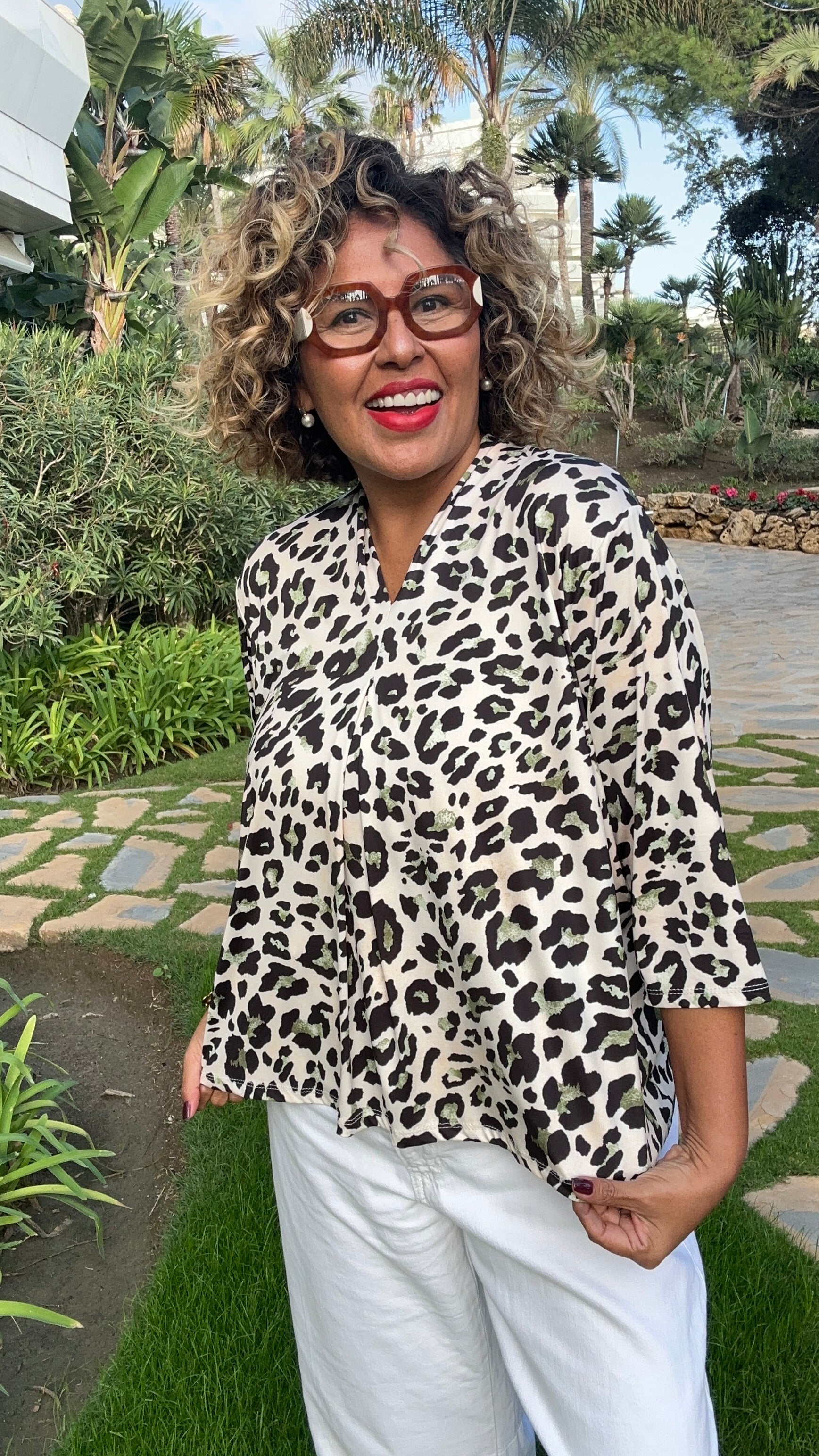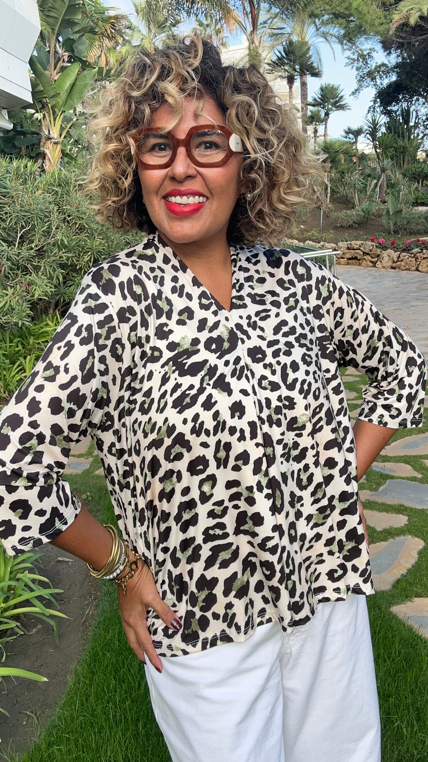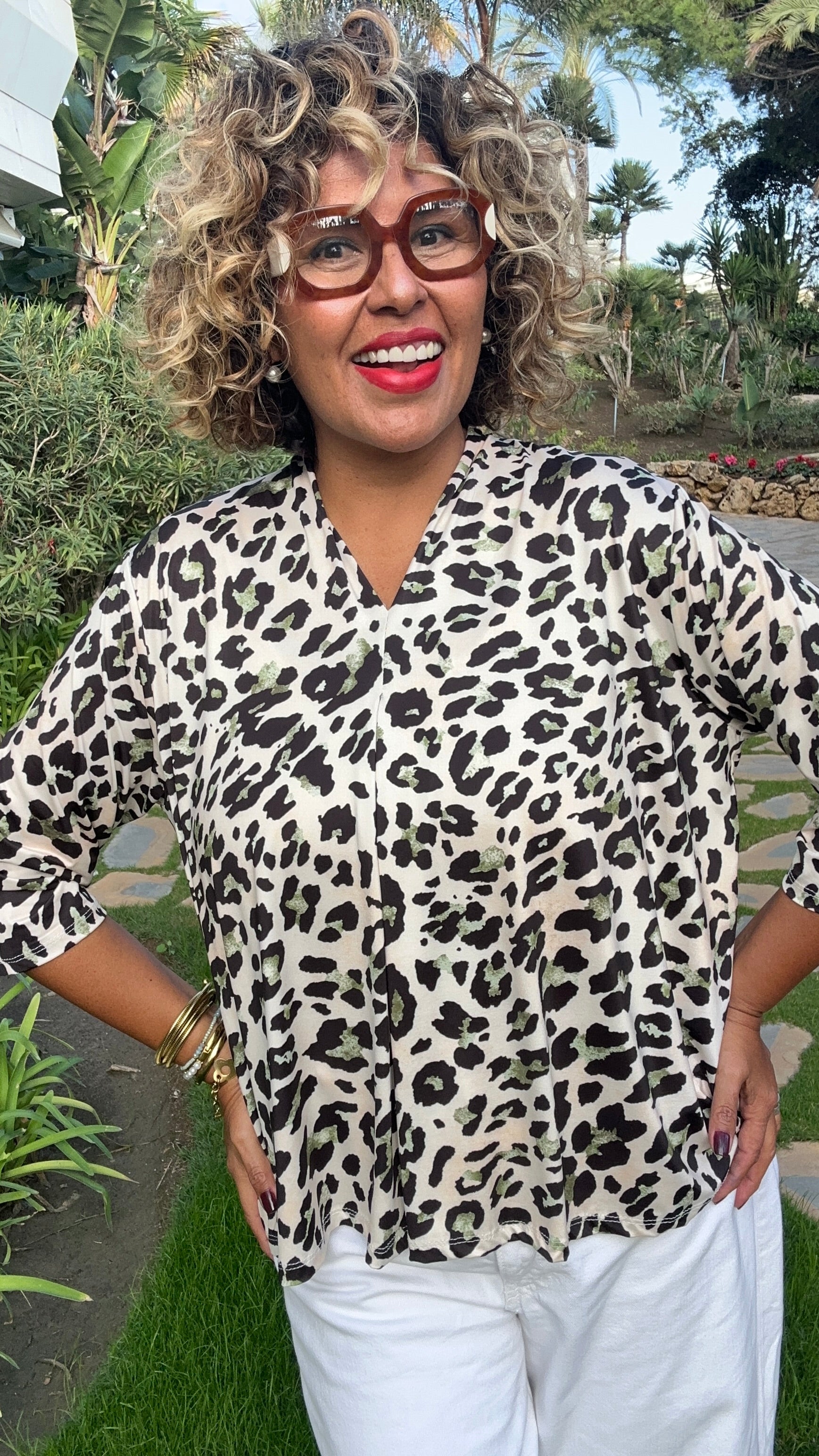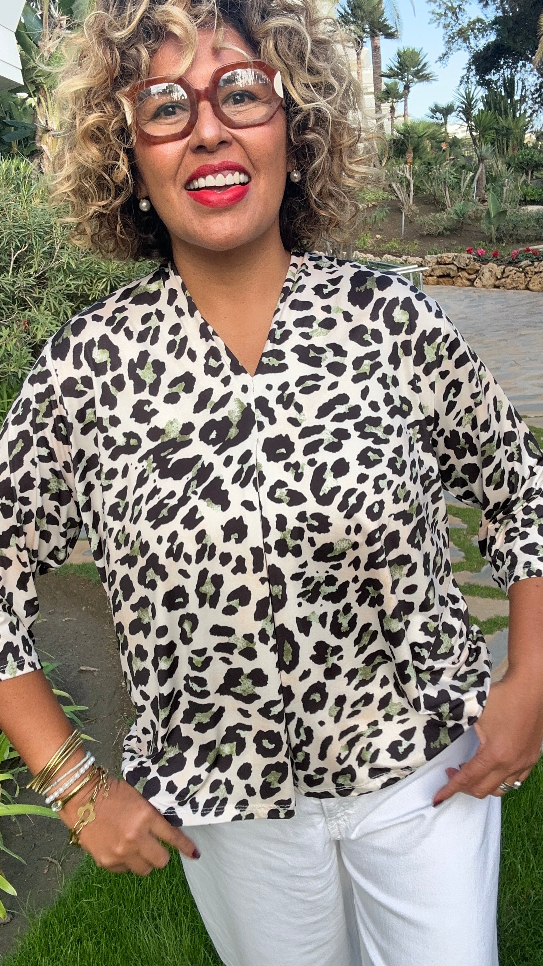 Blusa animal print con verdes con manga 3/4 - Contorno busto 124cm y largo 65cm (Material Poliéster)
