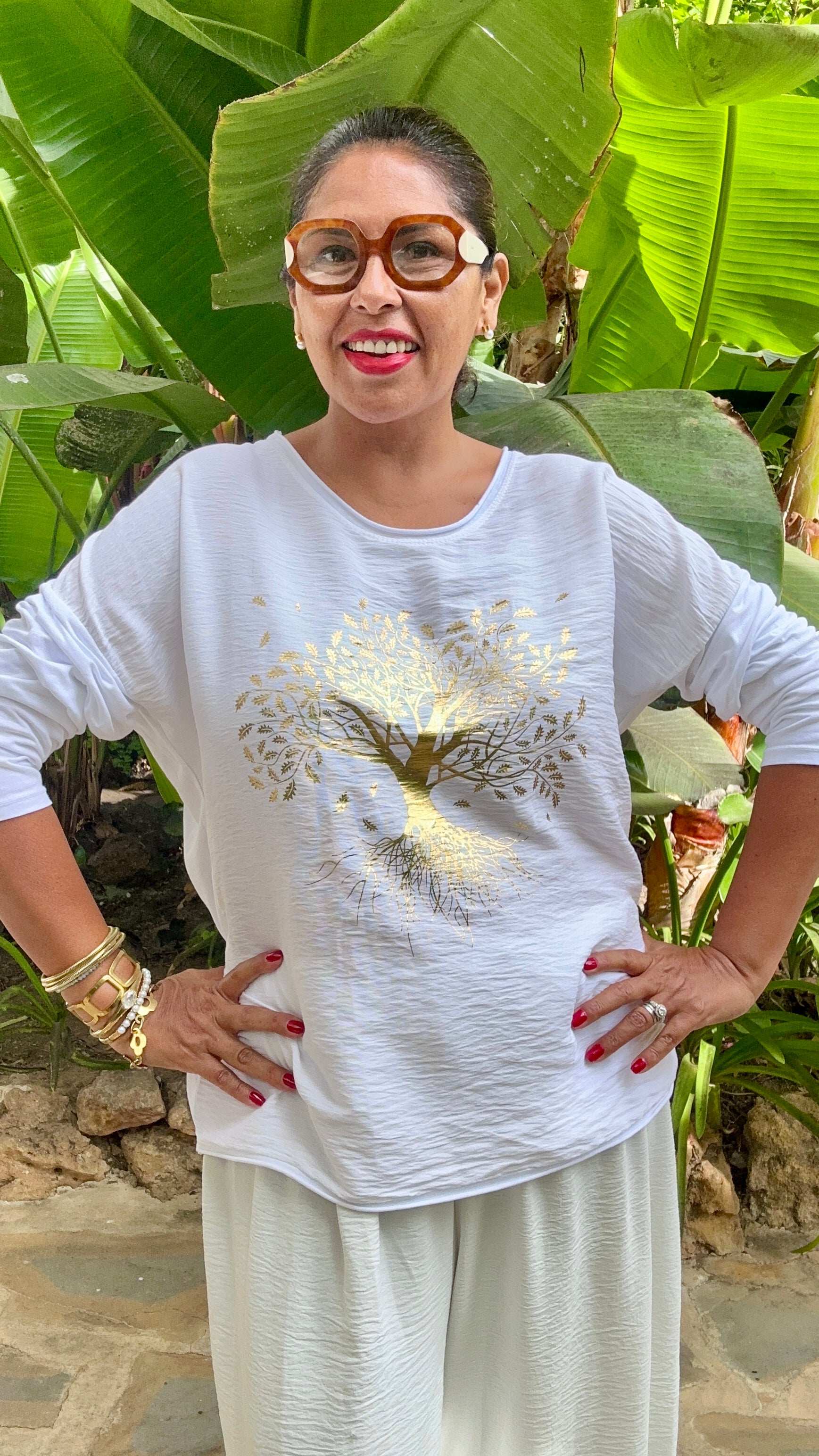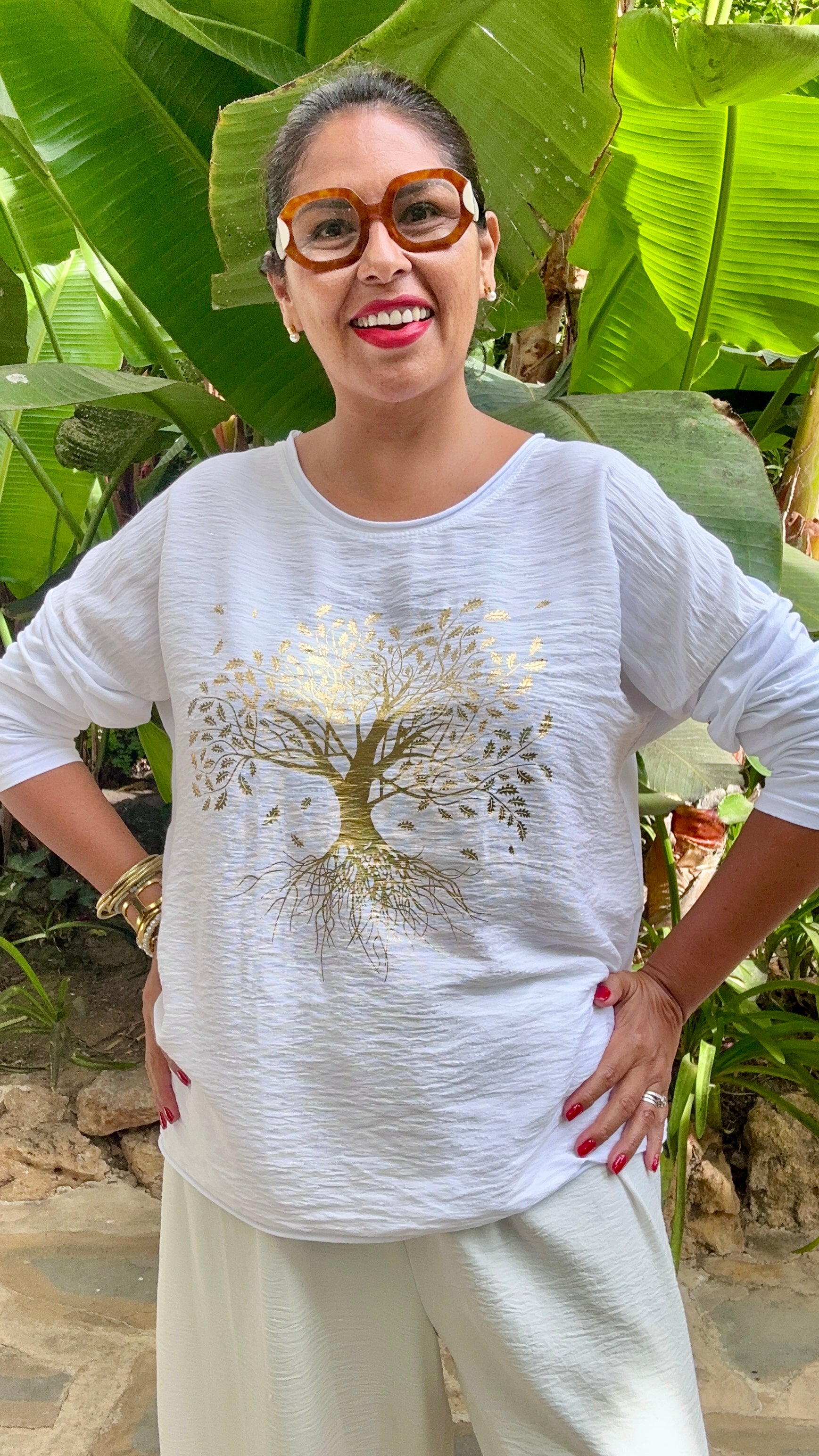 Camiseta manga larga cello redondo, estampado árbol de la vida.