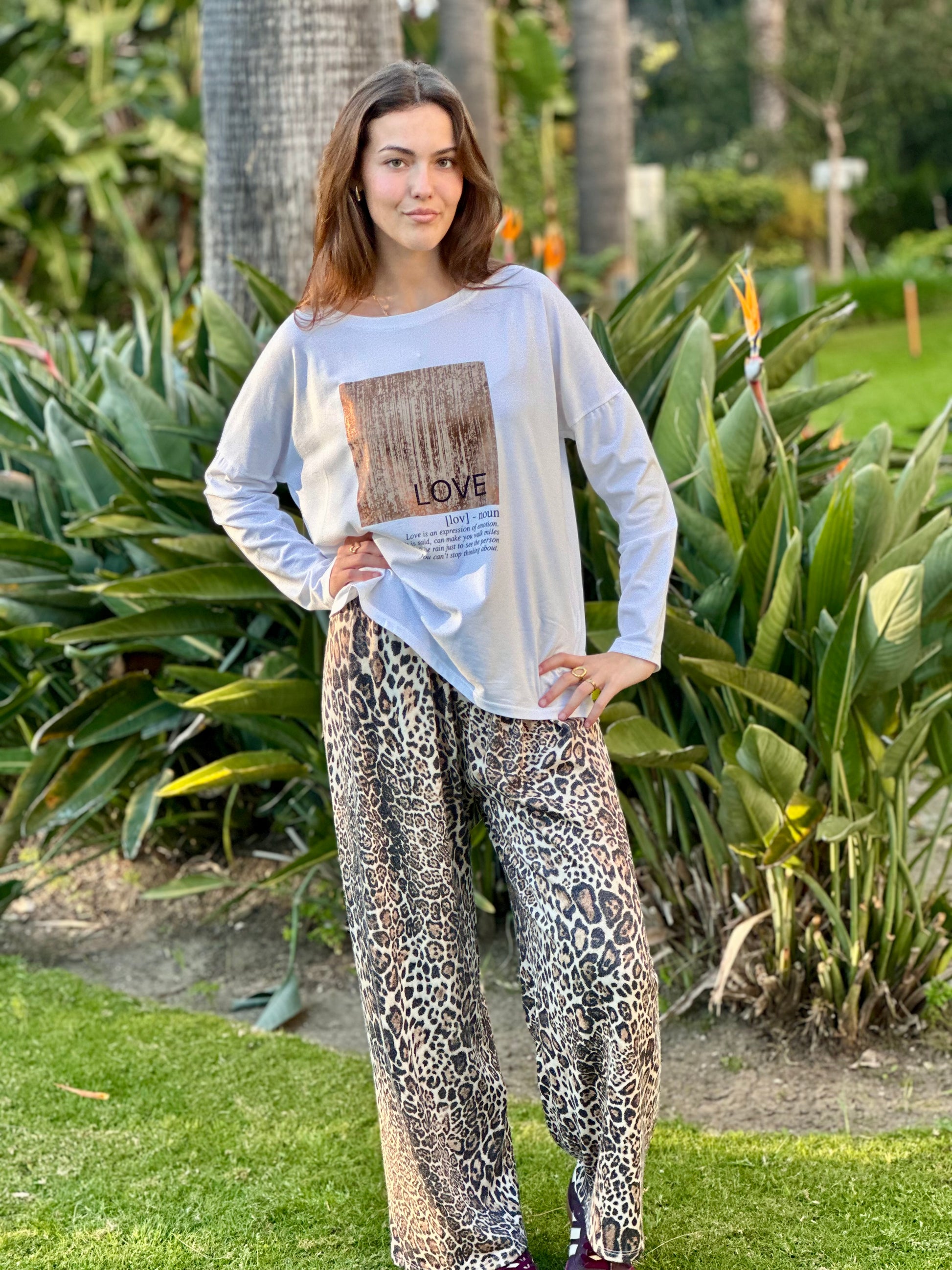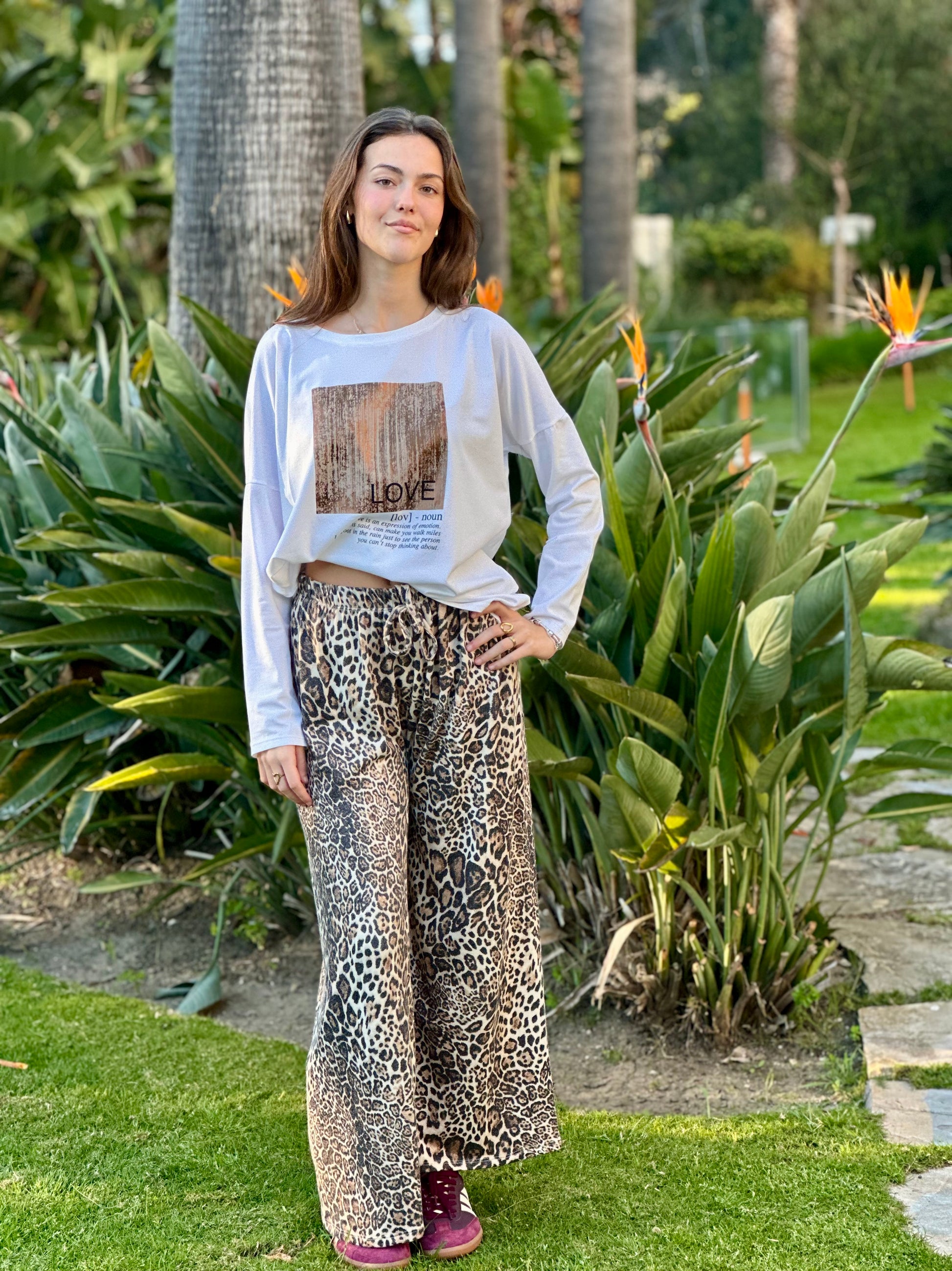 Pantalón estampado con cintura elástica para un ajuste cómodo y moderno. Diseño único y elegante que realza tu estilo. Ideal para cualquier ocasión.