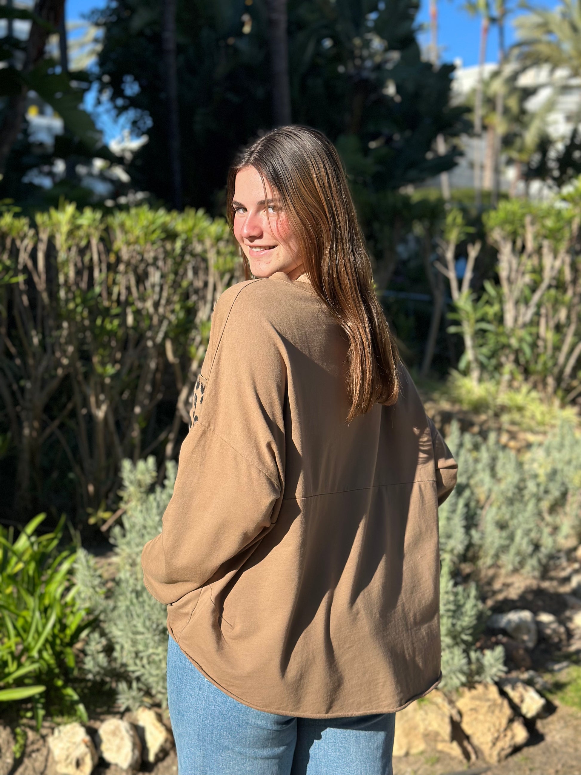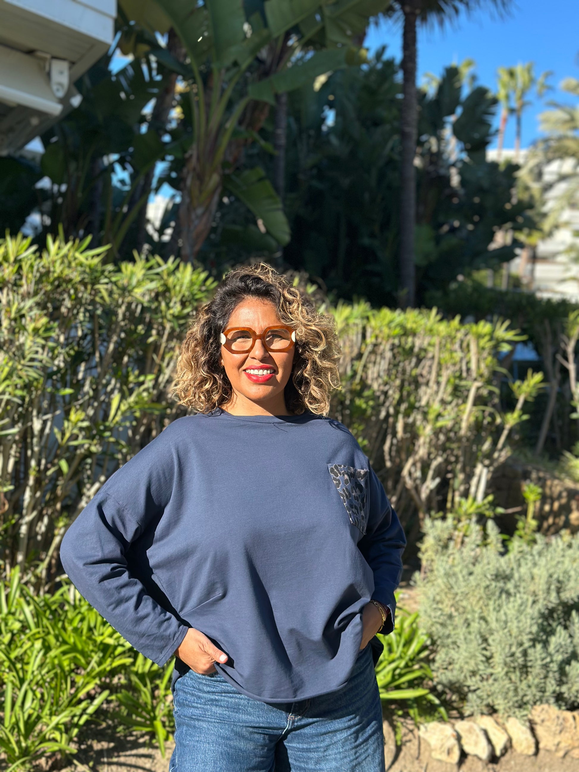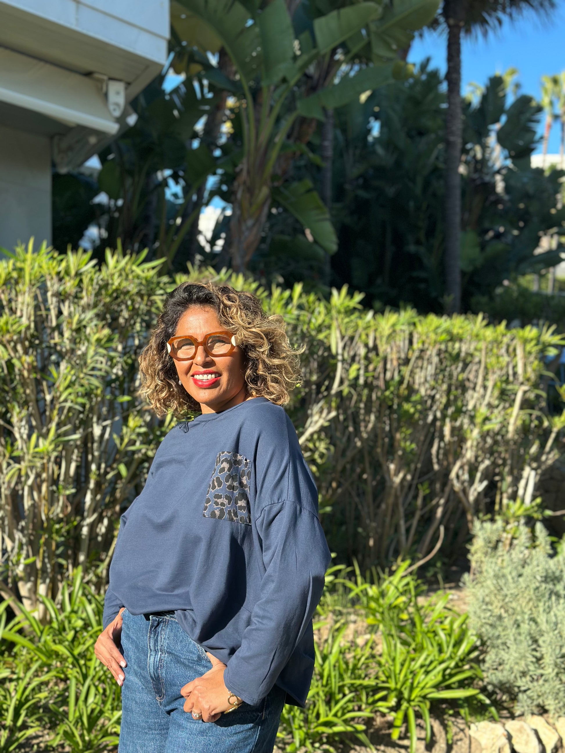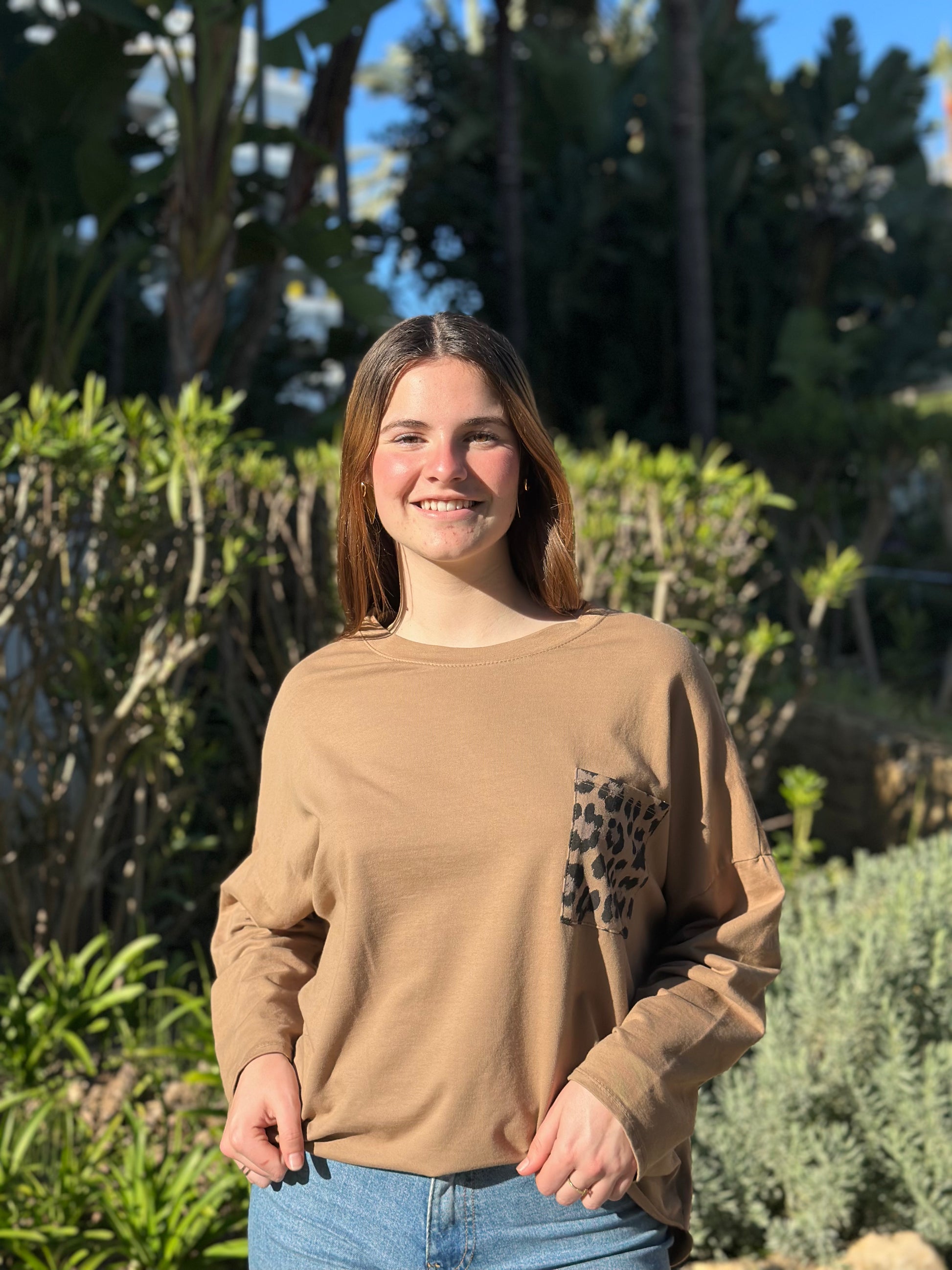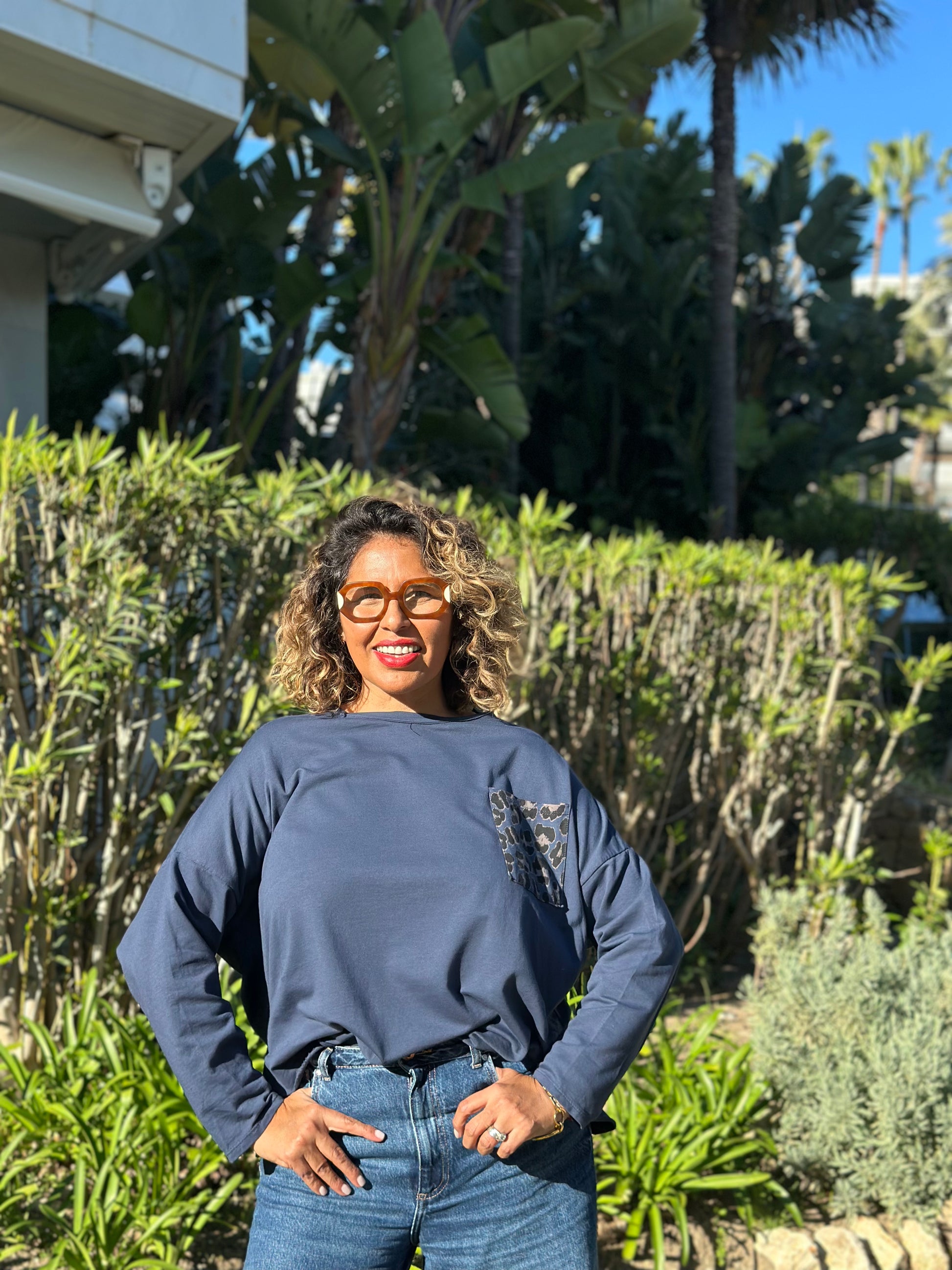 Sudadera cómoda y elegante con cuello redondo y manga larga. El detalle de bolsillo en animal print le da un toque moderno y sofisticado. ¡Ideal para un estilo urbano y a la moda en Perú!
